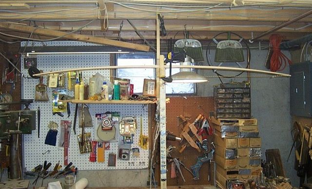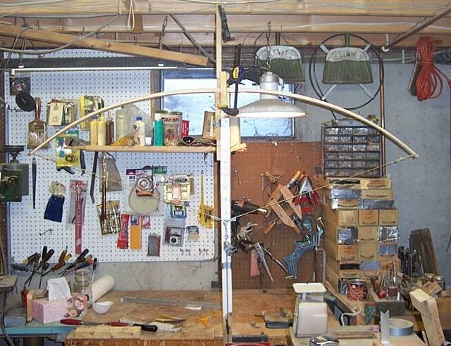 The tiller you see starting to take shape in the next pic is a good tiller for a bow that bends in the handle. I'm aiming, however, for a bow with a slightly stiffened handle. I need more bending from mid limb to tip to accomplish this. Also the right limb is a little stiff. I worked a bit more on it. She is now pulling 57# at 10 inches. Almost ready for the string.