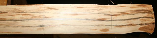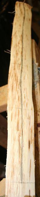 Note how the vertical or lateral grain on this stave is somewhat snaky. I drew a pencil line down the middle of this stave following this grain .