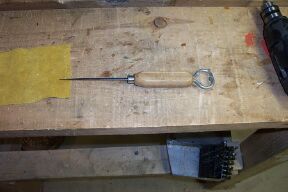 Drill the holes. I use a variable speed drill. Watch your fingers and wear glasses. You may also punch the holes.